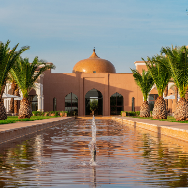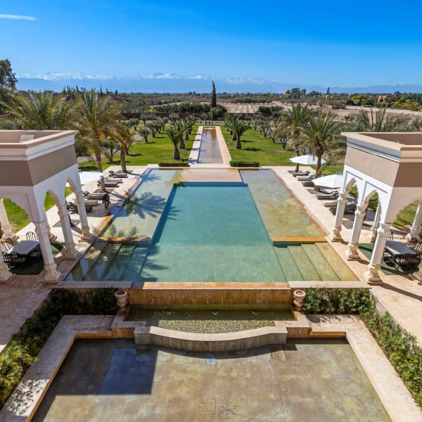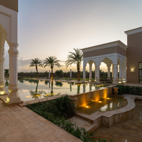 Ce palais arabo-andalous est situé dans un domaine privé à seulement 11 kilomètres du centre de Marrakech. Niché au sein d'un parc de 2 hectares de palmiers, d'oliviers et d'arbres fruitiers, son décor raffiné et sa vue imprenable sur les montagnes de l'Atlas en font un lieu d'exception.